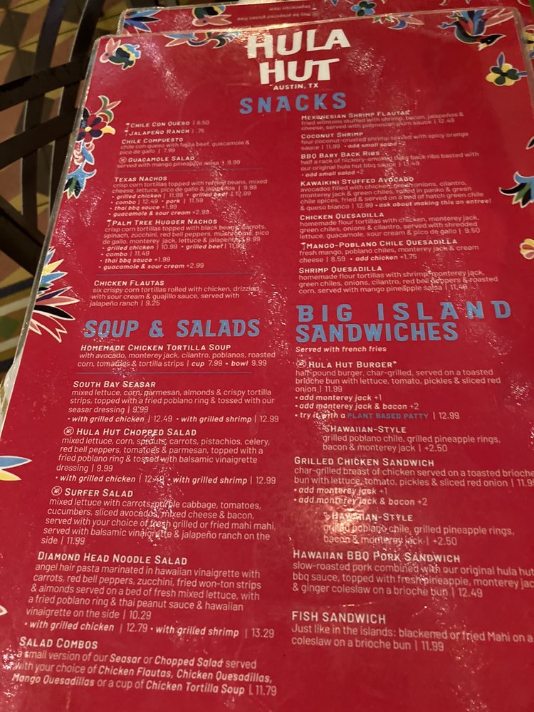 At Hula Hut, we celebrate the fusion of Tex-Mex flavors in a vibrant, welcoming atmosphere. Located on the scenic Lake Austin Blvd in Austin, Texas, our eatery prides itself on delivering classic Mexican dishes with a unique twist. From hearty vegan and vegetarian options to a variety of delicious entrees, we cater to all dining preferences. Guests can enjoy outdoor seating, relax with a drink during happy hour, or gather for a family meal. With convenient delivery, takeout, and catering services, Hula Hut is designed for all occasions—where great food and good company come together. Join us and savor the joy of Tex-Mex!